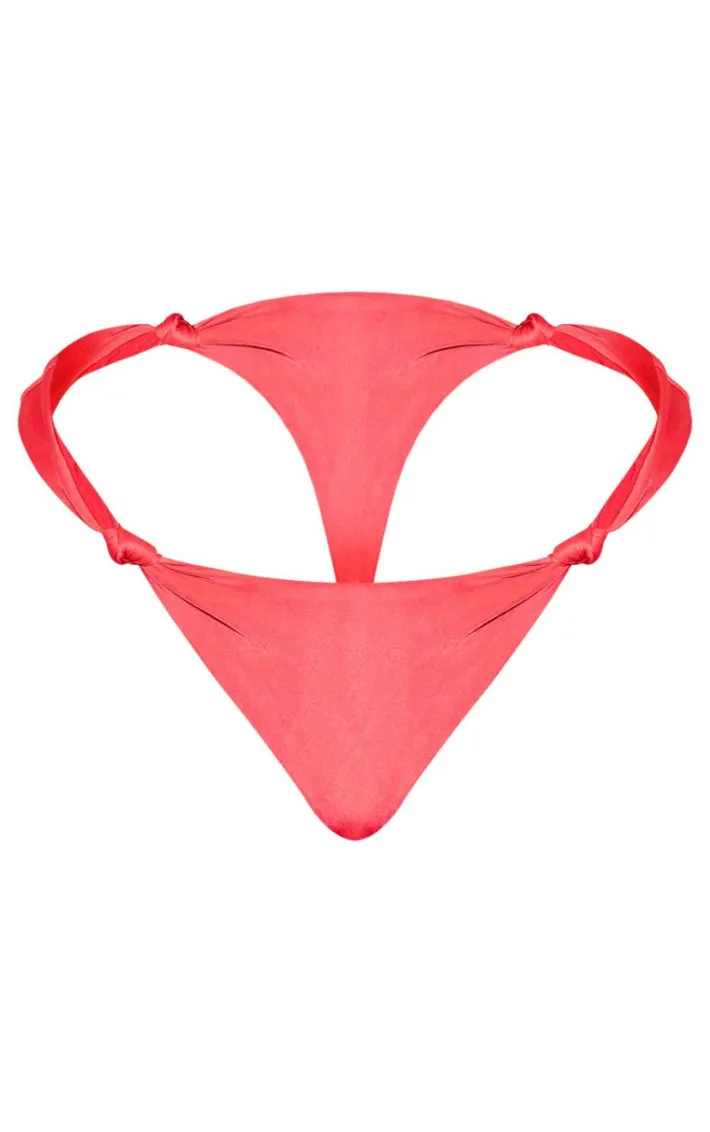 Brighten up your vacay wardrobe with this red ruched knot detail high leg bikini bottoms. Brought to you in a red hue material with a ruched design, knot detailing and a flattering high leg fit, how can you say no? Style these bikini bottoms with the matching bikini top and statement gold accessories for a poolside look that is sure to make heads turn.