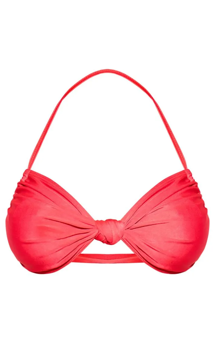 Give your vacay wardrobe the upgrade it deserves with this red ruched knot front bikini top. Brought to you in a red hue material with a ruched front design and knot detailing, what’s not to love? Style this bikini top with the matching bikini bottoms and statement gold accessories for a poolside look that is sure to have all eyes on you.