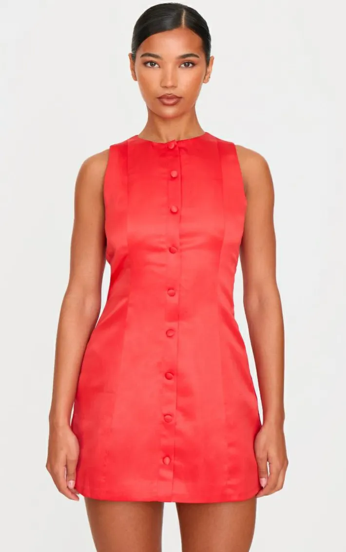Add a touch of elegance to your collection with this red satin button A-line dress. Brought to you in a must have red shade, with a luxe satin material and button detailing, you won’t be blending in. Style with a pair of red heels and minimal accessories to finish off the look. It’s a yes from us.