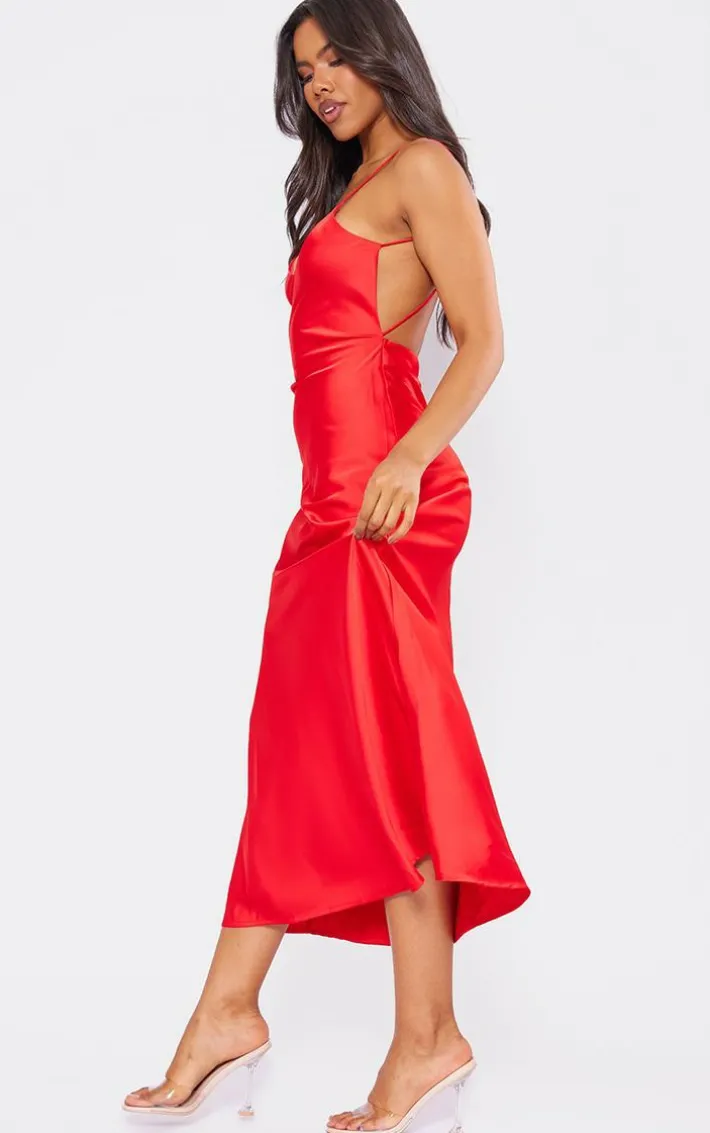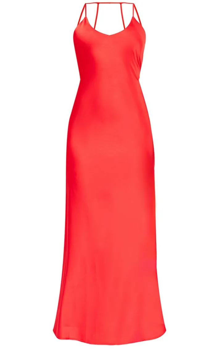 Make them stop and stare in this red satin V neck slip dress. Brought to you in a red hue satin material with a V neck design and a figure-flattering fit, how can you not fall in love? Style this slip dress with your highest heels and some glam accessories for an occasion look that won’t be forgotten.