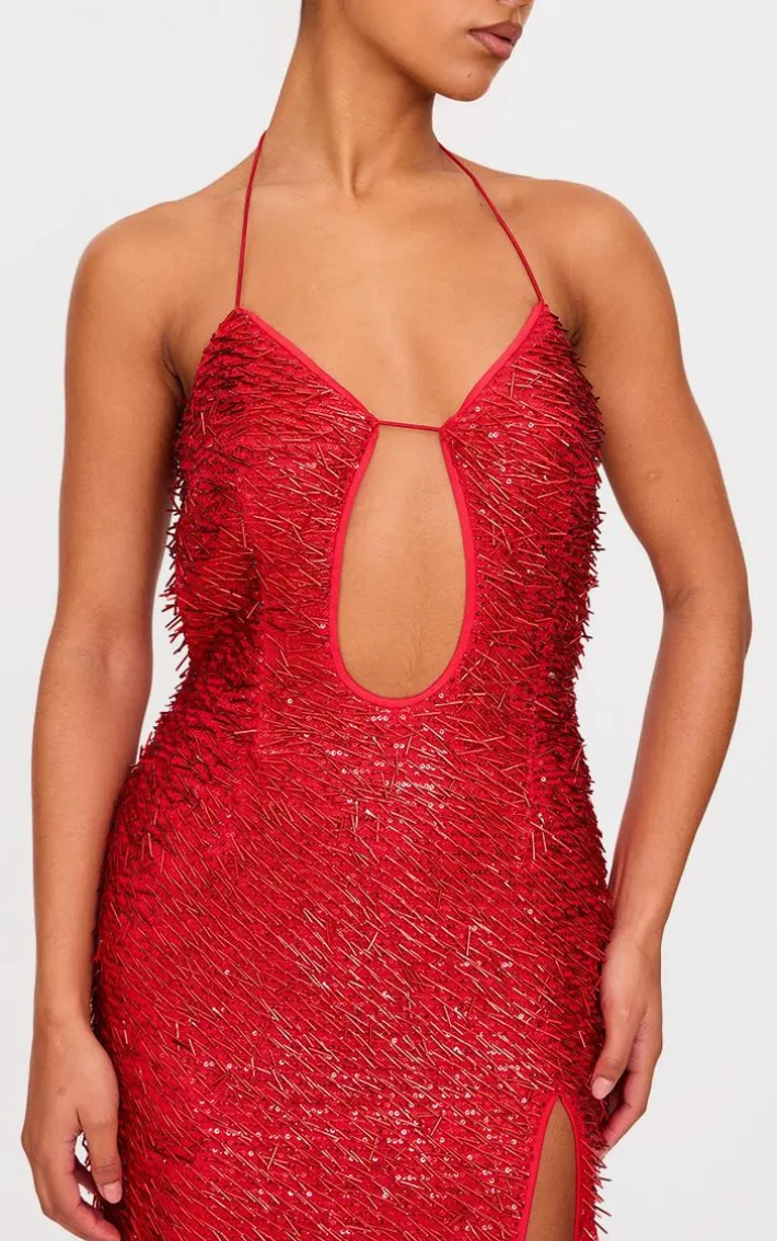 This red sequin cut out maxi dress is a must have for those important occasions you have pencilled in your diary. Brought to you in a red sequin material with a cut out design and a maxi length, you won’t blend in. Give them something to talk about by pairing with some heels and your fave accessories, it’s a yes from us.
