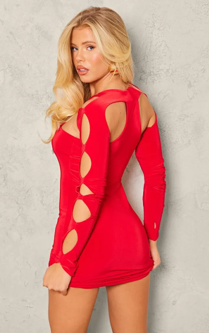 Take on your weekend the right way with this statement red slinky extreme cut out mini dress. Made from a red slinky material with an extreme cut out design, this is everything were loving and more. With its figure-hugging fit and mini length, this dress is sure to hug you in all the right places. To complete the look style this seamlessly with a pair of heels and your fave gold hoops for a look that will secure you all the likes.