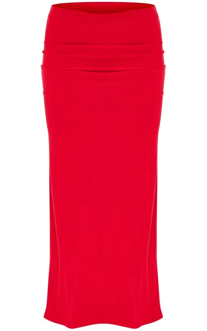Get ready to make a serious style statement in this red soft touch low rise maxi skirt. Brought to you in a red hue soft touch material with a low rise design and a flattering maxi fit, how can you resist? We are loving this maxi skirt styled with the matching top, heels and gold accessories for a look that is sure to make you stand out from the crowd for all the right reasons.