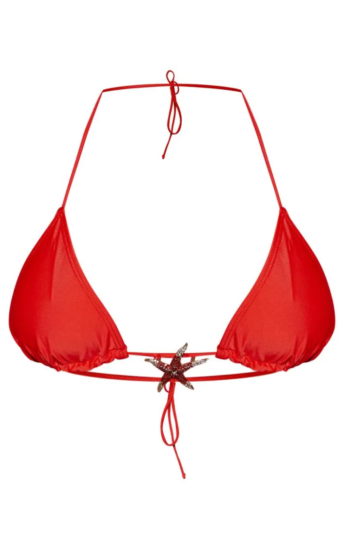 Dare to go bold this season with this red starfish trim triangle bikini top, you’re sure to have heads turning. This bikini top features a red material with a starfish trim detail and a triangle cup design, what more could you want? Just add the matching bikini bottoms and your fave accessories for a look everyone will be asking about.