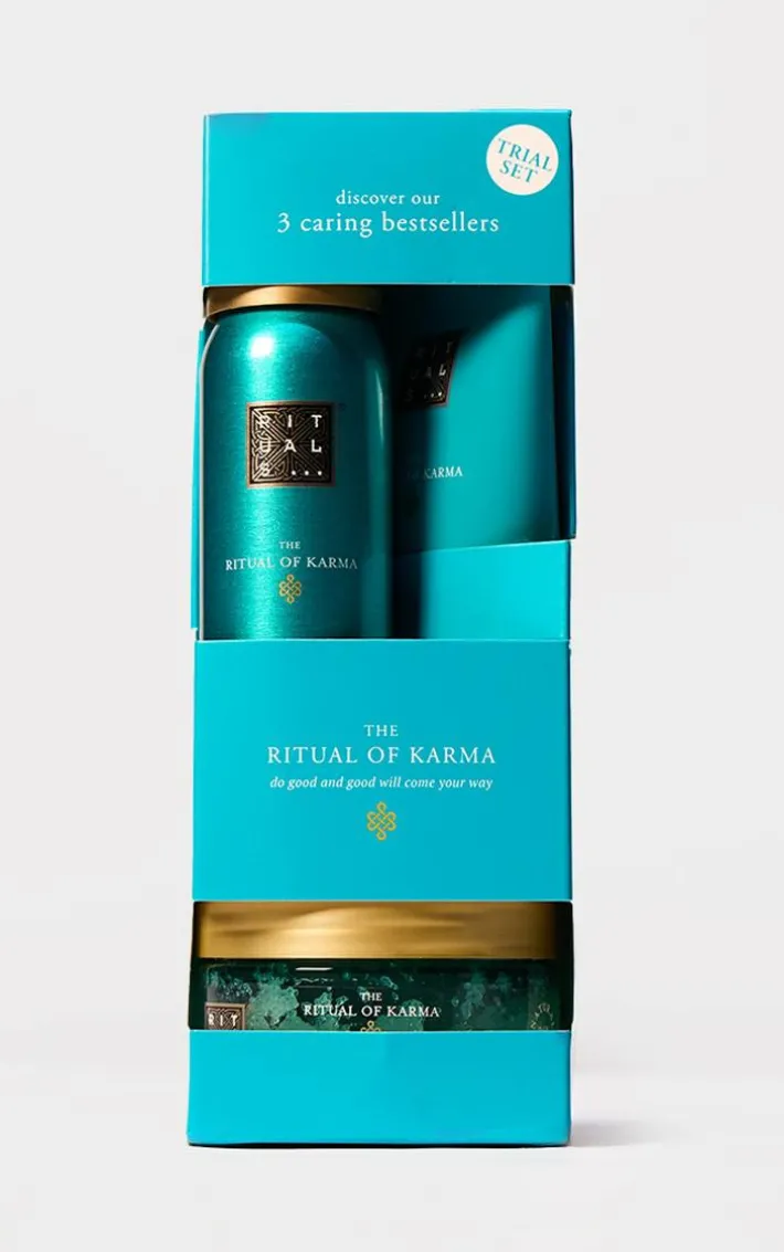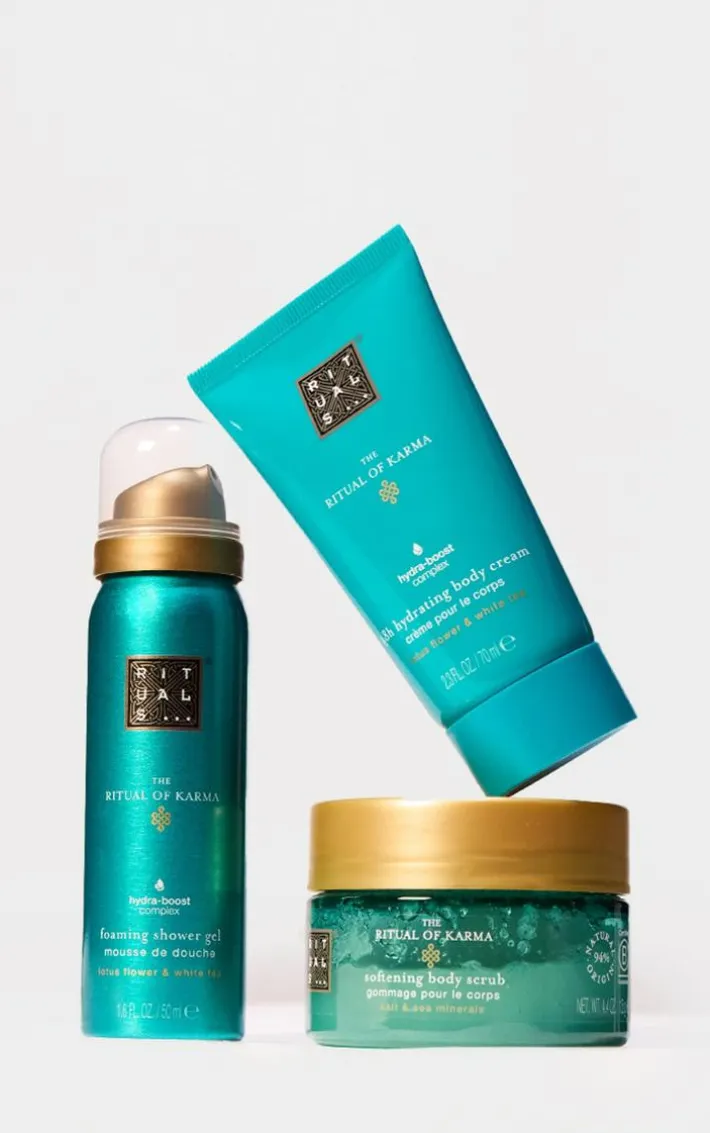 From the Ritual of Karma collection, the Rituals Try Me Set brings together three of the brand’s best-selling body care essentials, designed to hydrate, cleanse, and exfoliate the skin. Infused with the uplifting fragrance of white tea and lotus, this trio provides a soothing floral aroma that enhances your evening self-care ritual.