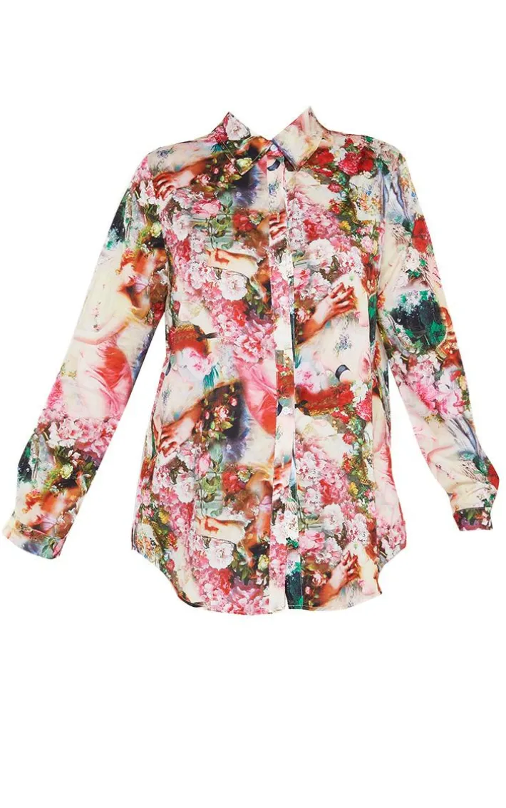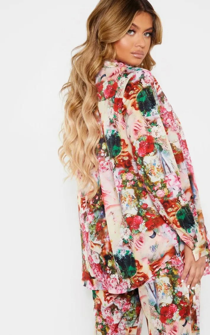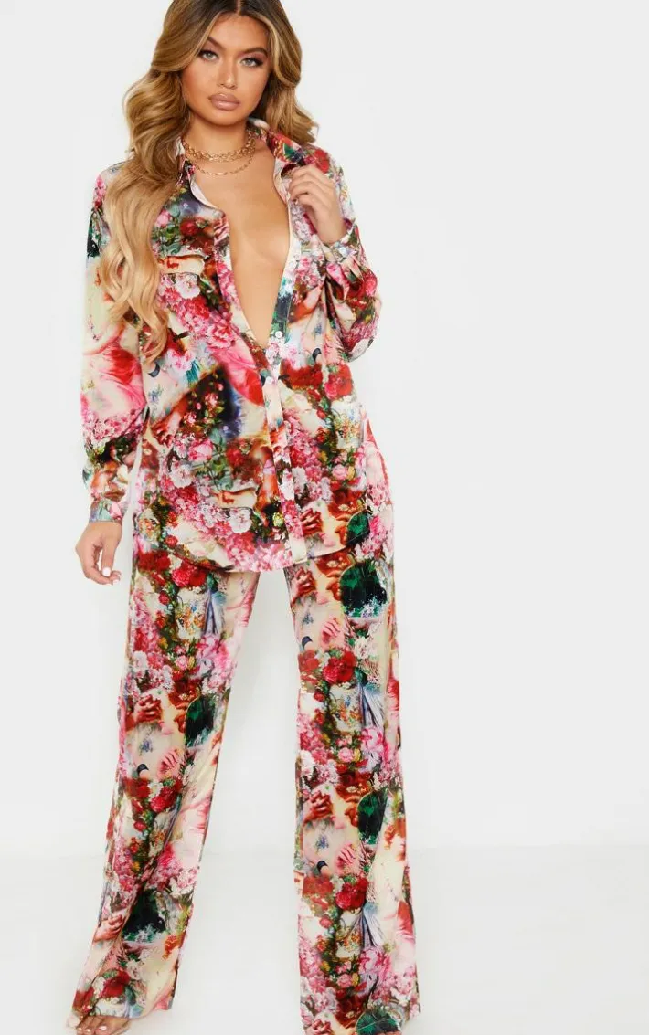 Add some bold prints into your weekend wardrobe with this killer shirt. Featuring a rose renaissance print material, button-up fastenings and an oversized fit, we love this teamed with the matching bottoms and a pair of strappy heels for a weekend worthy look.