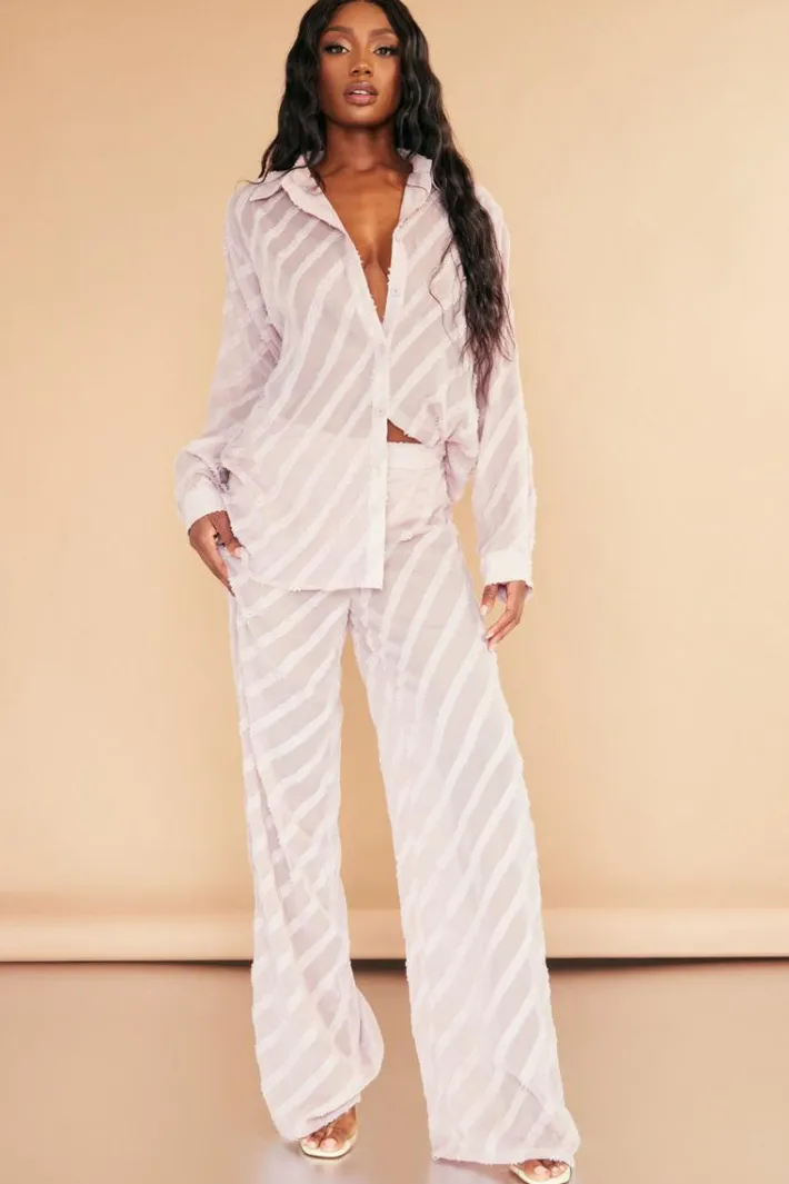 Add some chic vibes to you weekend wardrobe with this rose textured chiffon oversized wide leg pants. With a textured chiffon material in a rose hue along with an oversized fit and a wide leg style, how could you resist? These pants are perfect for those catch ups with the dolls, what more could you want? Team this with the matching shirt, high heels and mini bag for a next-level look.