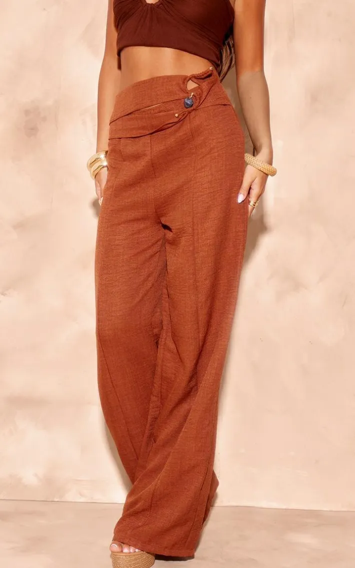 Got a special occasion penciled into your diary? Well we’ve got you covered with these rust linen look bead trim belter wide leg pants. Brought to you in a rust linen look material with a bead trim, how could you say no? These wide leg pants have a trim belter that will have you setting trends wherever you step foot. For a flawless finish team this with a crop top and your fave accessories. It’s everything we’re loving right now.