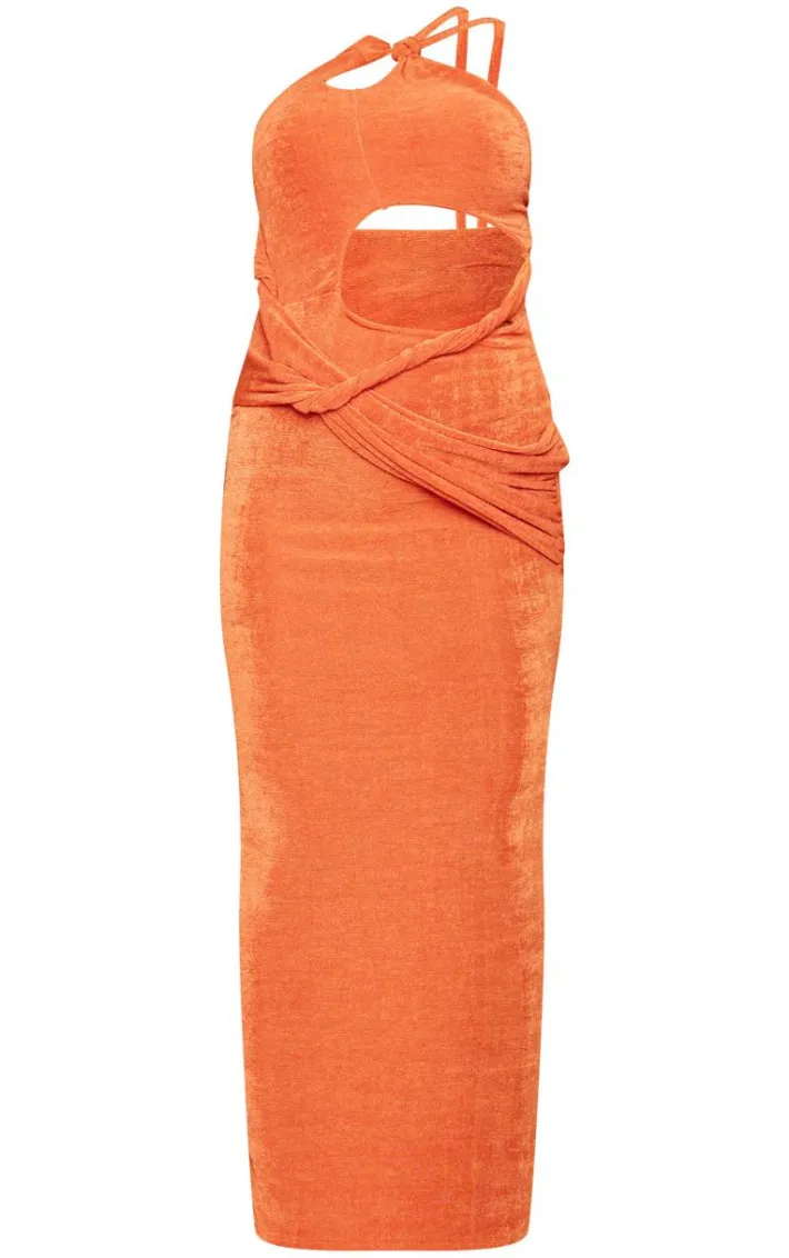 Give your weekend wardrobe the luxe upgrade it deserves with this rust slinky acetate one shoulder cut out cross front maxi dress, it is perfect for your next upcoming occasion and beyond. This dress features a rust slinky acetate material with a one shoulder design and a cut out design. Just add slip-on heels and a shoulder bag for a look that will help show off your confident side.