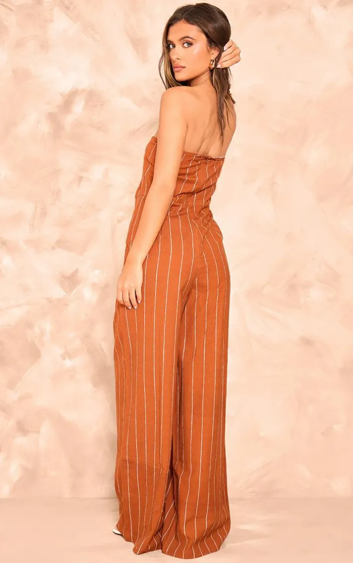There’s no such thing as too many jumpsuits , and you’re in need of this rust stripe bandeau pocket detail jumpsuit. Brought to you in a rust material with a stripe bandeau design, you’re sure to be the best dressed in this unreal jumpsuit. Its pocket detail bring all the edge. Style this with your fave sandals and sunnies to have all eyes on you.