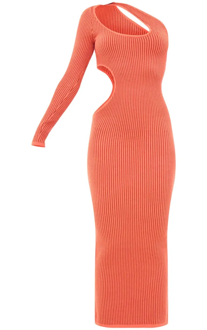 Enter the new season in style with this rust two tone knit one shoulder cut out maxi dress. Brought to you in a rust two tone knit material with a one shoulder design, cut out detailing and a figure-flattering maxi fit, how can you resist? Style this maxi dress with heels and gold accessories for a look that will have all eyes on you.