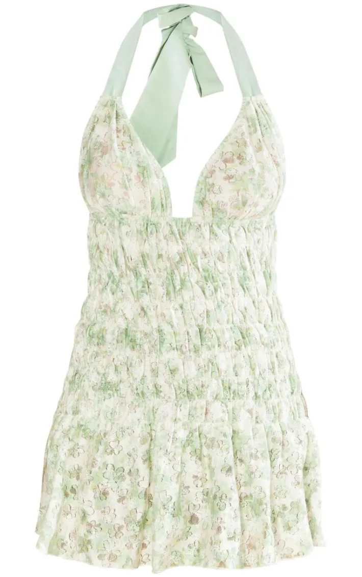 Get your glam on with this sage floral textured shirred strappy bodycon dress. Made from a sage floral textured material with shirred detailing, a strappy design and a figure-hugging fit, you’re sure to have all eyes on you. When the weekend calls so does this bodycon dress. So what are you waiting for? Shop the look and pair this dress with high heels and accessories for a look like no other.