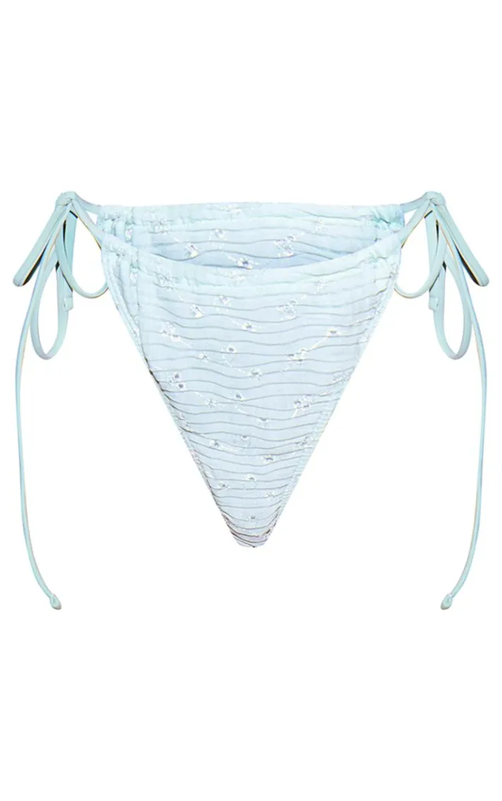 Get heads turning for all the right reasons with these sage green broderie thong bikini bottoms. Brought to you in a sage green broderie material with a thong design giving you a flattering fit like no other. Team this bikini bottoms with the matching bikini top for a look like no other.