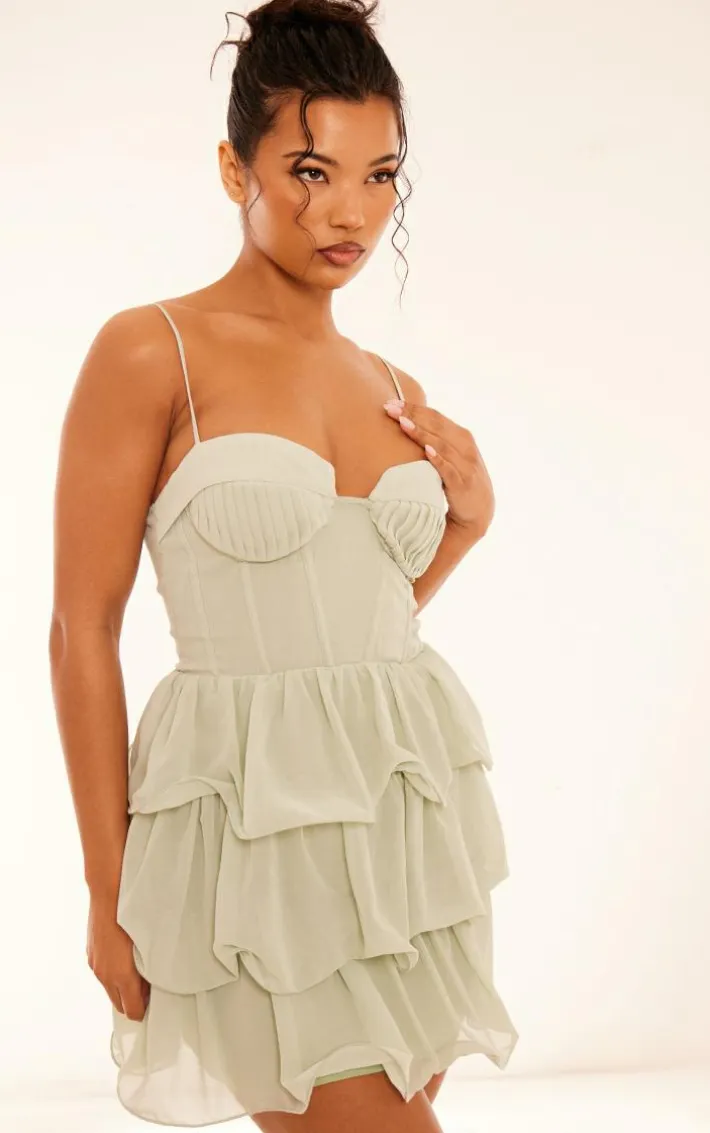 You are guaranteed to make heads turn in this sage green chiffon pleat cup detail frill shift dress. Brought to you in a sage green hue chiffon material with a pleat cup design and frill detailing, how can you resist? Style this shift dress with some glam heels and statement accessories for an occasion look we just can’t get enough of.