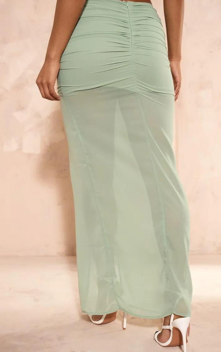 Take your new season look to a whole new level with this sage green chiffon ruffle front maxi skirt. Brought to you in a sage green chiffon material with a ruffle front and a maxi length, how can you resist? Style this maxi skirt with a white corset, high heels and accessories for a look that is sure to make heads turn for all the right reasons.