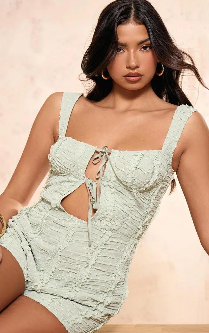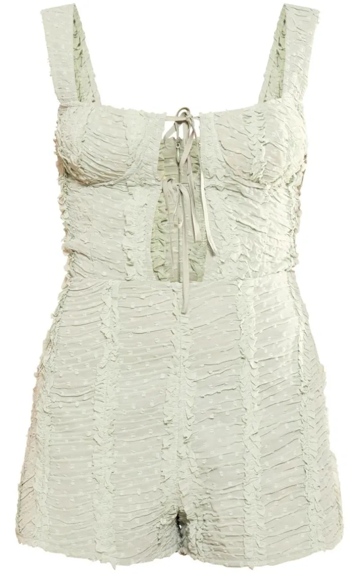 Found some last-minute weekend plans and need an unreal ‘fit? Then we have you covered with this styling staple, a sage green dobby textured underwired sleeveless romper. With a sage dobby textured material with an underwired design and a sleeveless style, we’re obsessed. Work your styling techniques and add high heels and accessories for a weekend-worthy finish that will gain all the likes.