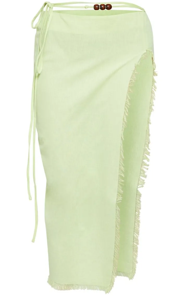 Give your new season wardrobe the upgrade it deserves with this sage green linen feel tie side bead details midi skirt, it is sure to be your new go to whatever your plans. This skirt is made using a sage green linen feel material with a tie side design and bead detailing, we’re seriously in love. Style this midi skirt with a cropped shirt, sandals and your fave accessories for the perfect warm weather day look.