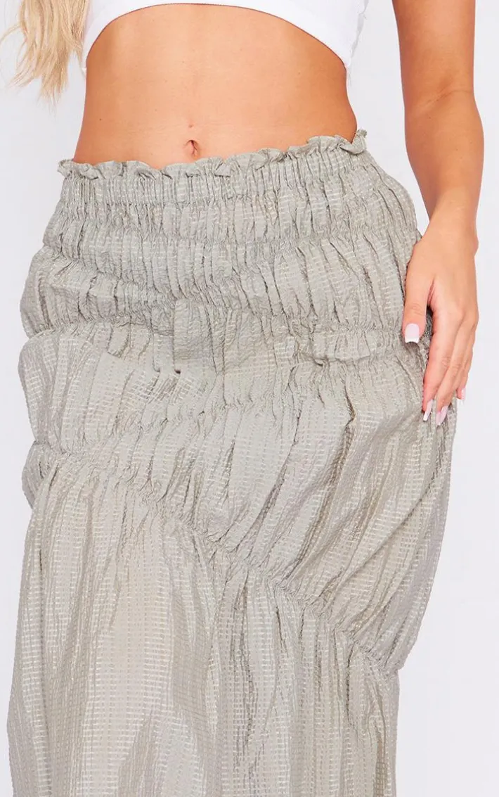 This sage green shirred detail crinkle woven maxi skirt is here to banish any of your what to wear dilemmas. Brought to you in a sage green shirred crinkle woven material with a maxi length, we can’tget enough. From start to finish this maxi skirt will have you looking totally on-trend. For a next-level look simply style with a white crop top, box-fresh kicks and accessories for a look that will have you setting trends wherever you step foot.