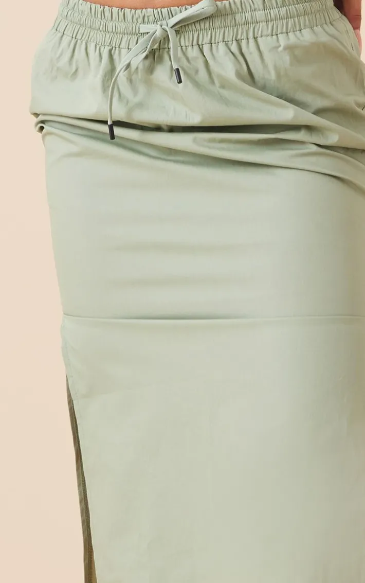 Give your off-duty wardrobe a fresh update with this sage khaki cotton poplin split side drawstring waist midaxi skirt. Its sage khaki cotton material is so on trend this season and with poplin details, what’s not to love? This midaxi skirt also features a side split hem and drawstring waist which is sure to take your look to the next level. Simply team with a basic white top, chunky white sneakers and some shades for a ready-to-go vibe.