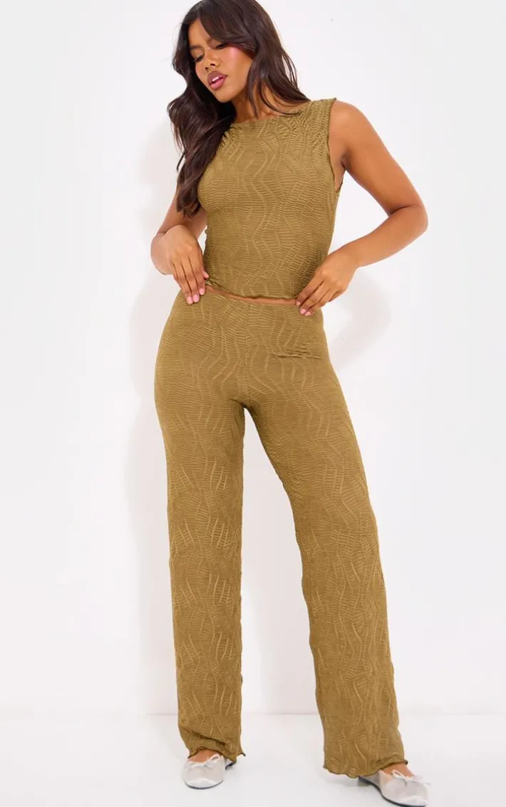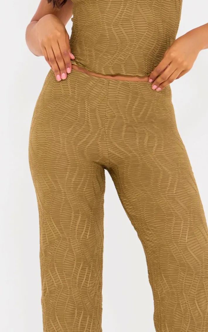 Keep it effortlessly chic with these sage khaki textured straight leg pants. Brought to you in a sage khaki material with a textured design and a straight leg fit, you will be setting major trends with these pants. These pants are sure to be your new go-to, so what are you waiting for? Team with the matching tip and a pair of ballet pumps for a look like no other.