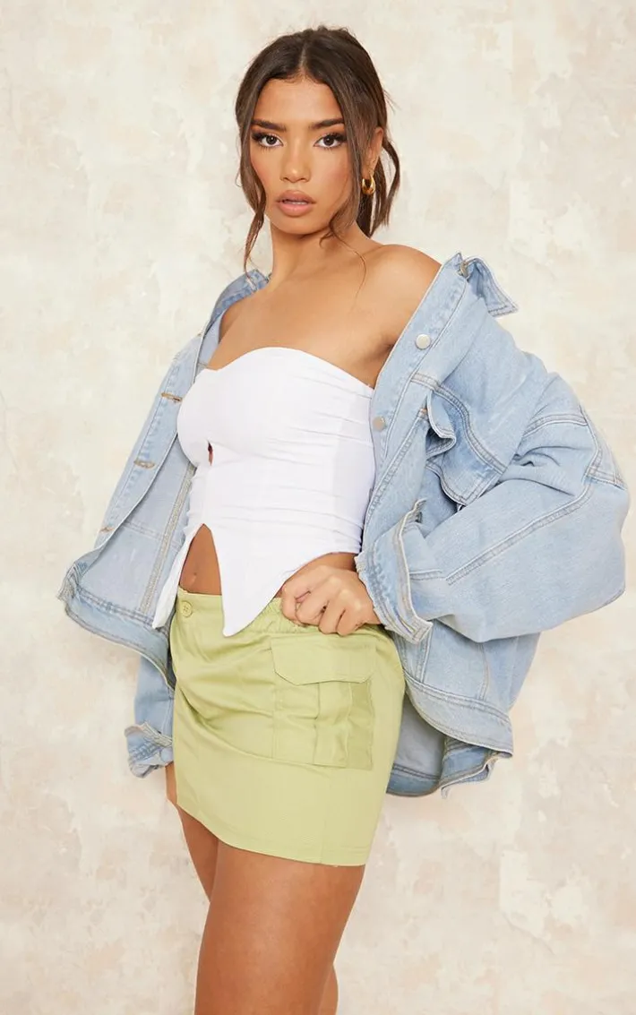 Take your look of the day to a whole new dimension with this sage khaki twill pocket front micro mini cargo skirt. Brought to you in a sage khaki twill material with a pocket front, a micro min length and a cargo style, how could you resist? To complete the look style this with your box-fresh kicks, a white crop top and your everyday essentials for a look that we can’t stop crushing on.