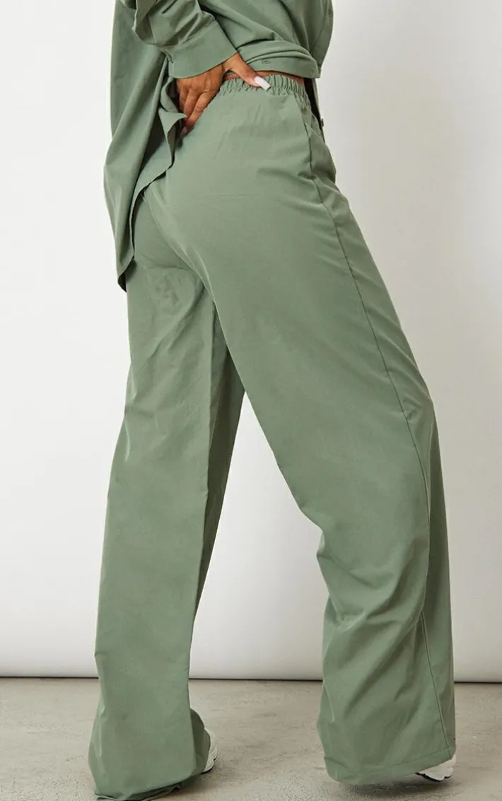 Hit refresh on your new season wardrobe with these bottoms. Featuring a sage khaki woven material with a wide leg design and an oversized fit. Style with the matching shirt and chunky kicks for a fresh finish.