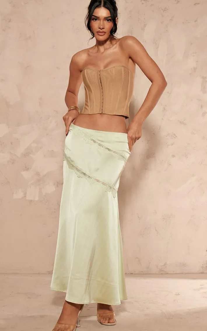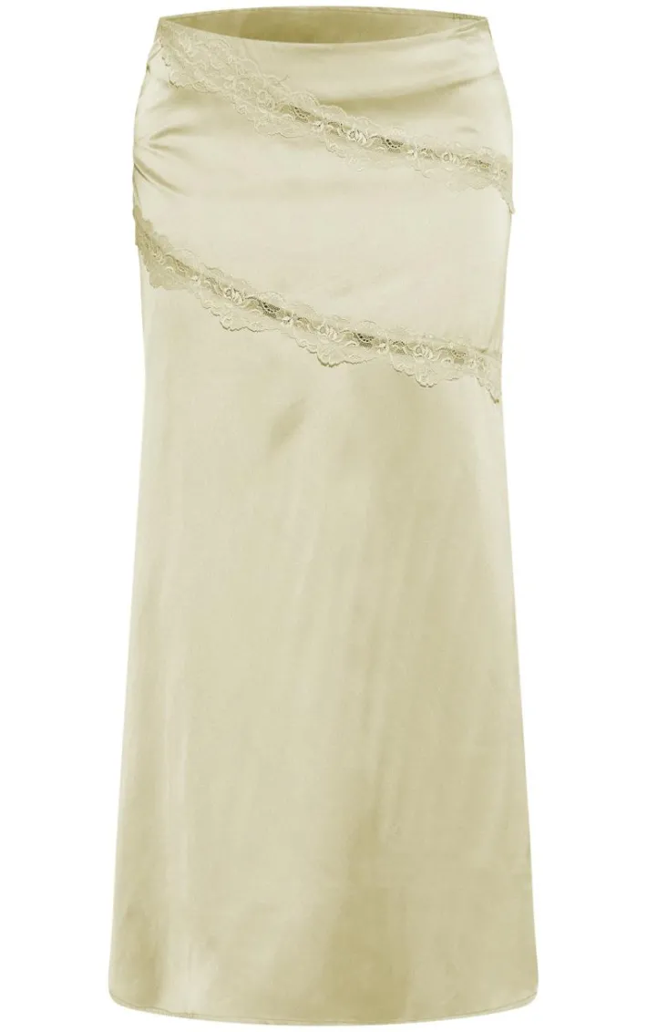 Bring all the dreamy satin feels to your new season wardrobe with this sage satin lace trim flippy midaxi skirt. Made from a sage hue satin material with a lace trim detailing and a flattering midaxi fit, how can you not fall in love? Style this midaxi skirt with a corset top and heels for a look that is sure to make heads turn.