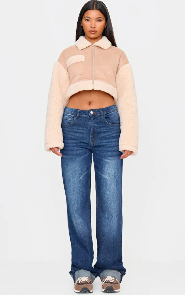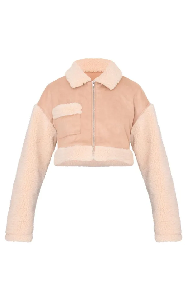 Introducing your new cold weather staple with this sand faux suede contrast borg cropped jacket. Brought to you in a sand hue faux suede material with a contrast borg design and cropped length, this jacket is a must have. How can you resist? Style with blue jeans, fresh kicks and simple accessories for a look like no other.