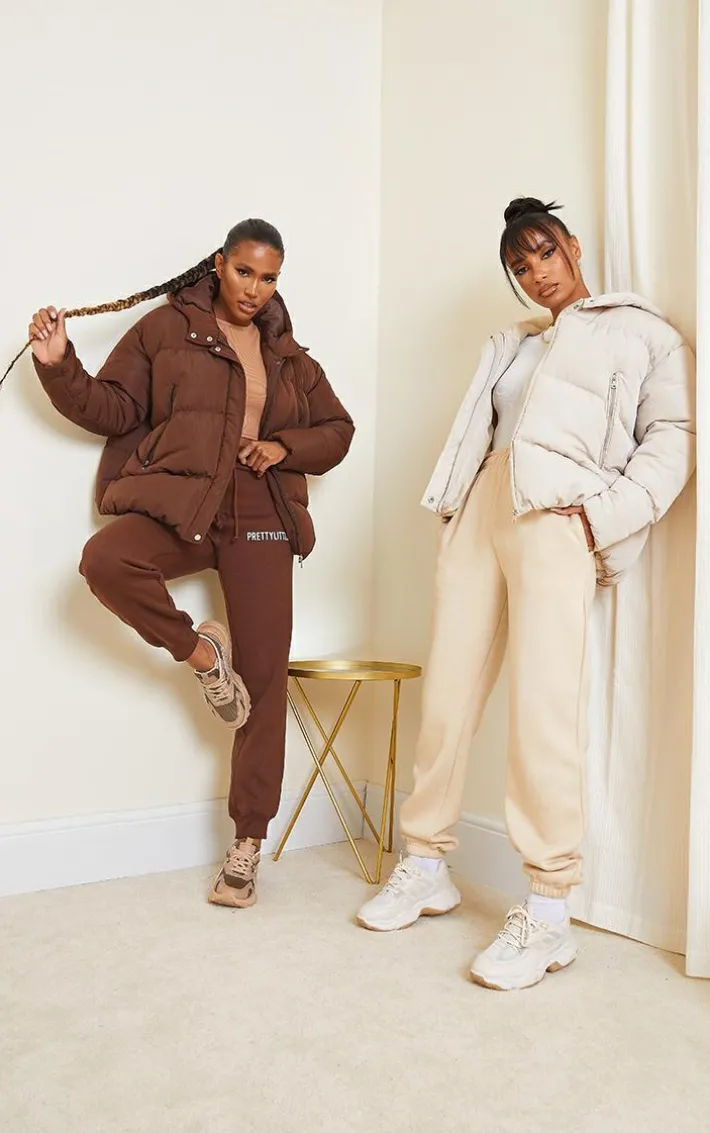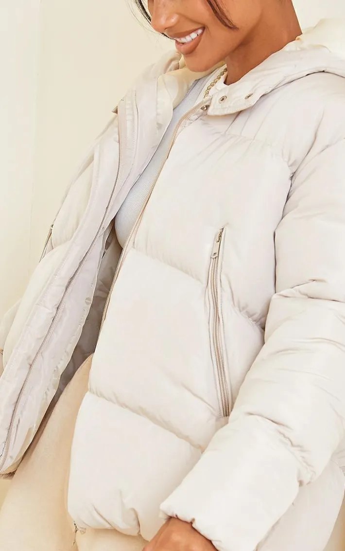 This puffer jacket is the perfect addition to your winter wardrobe. Featuring a sand material with a hooded design and an oversized fit, style this with leggings and chunky boots to complete the look.