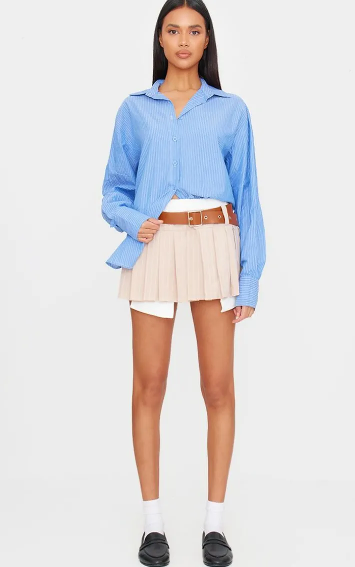 Bring all the neutral hues to your new season wardrobe with this sand stripe pleated belt detail mini skirt. Made from a sand hue stripe material with a pleated design, belt detailing and a mini fit, what’s not to love? Style this mini skirt with a top, cardigan and chunky boots for an effortlessly chic everyday look that is sure to gain you all the compliments.