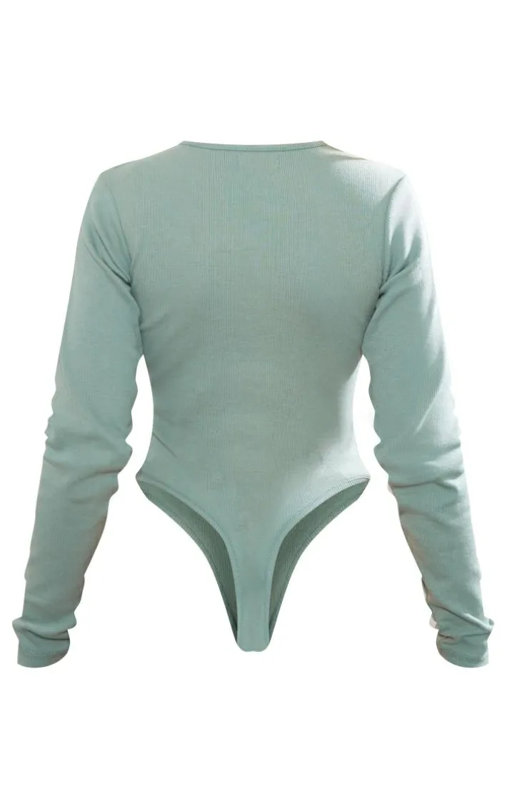 Hit refresh on your new season wardrobe with this sea green basic rib long sleeve bodysuit, we’re in love. This bodysuit features a sea green ribbed material with long sleeves and a figure-worshipping fit, it is perfect for dressing up or down. Style this rib bodysuit with long shorts, sneakers and sunglasses for a chic, Summer ready fit.
