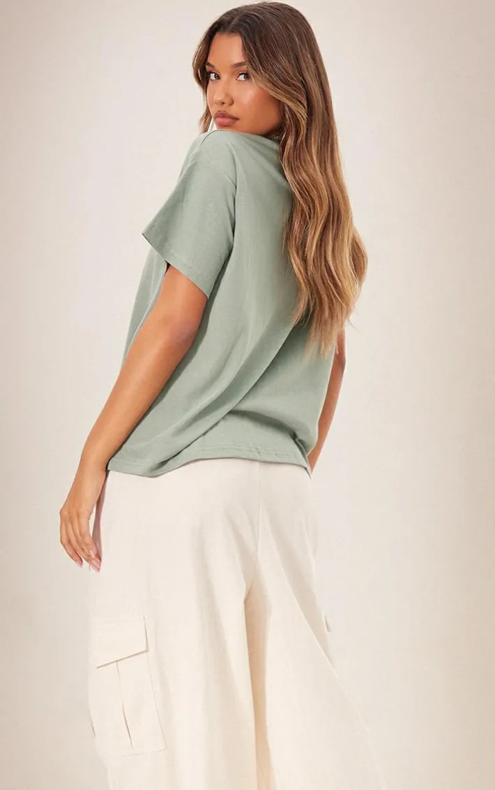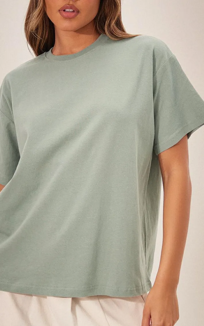 Add to your basics collection with this seas green boxy oversized t shirt. This unreal t shirt is perfect for those off-duty days and beyond. Brought to you in a sea green material with a boxy design adding all the edge to your look. Its oversized fit is sure to have you setting major trends no matter what. Team with some wide leg pants and a pair of your fave shades for a look like no other.