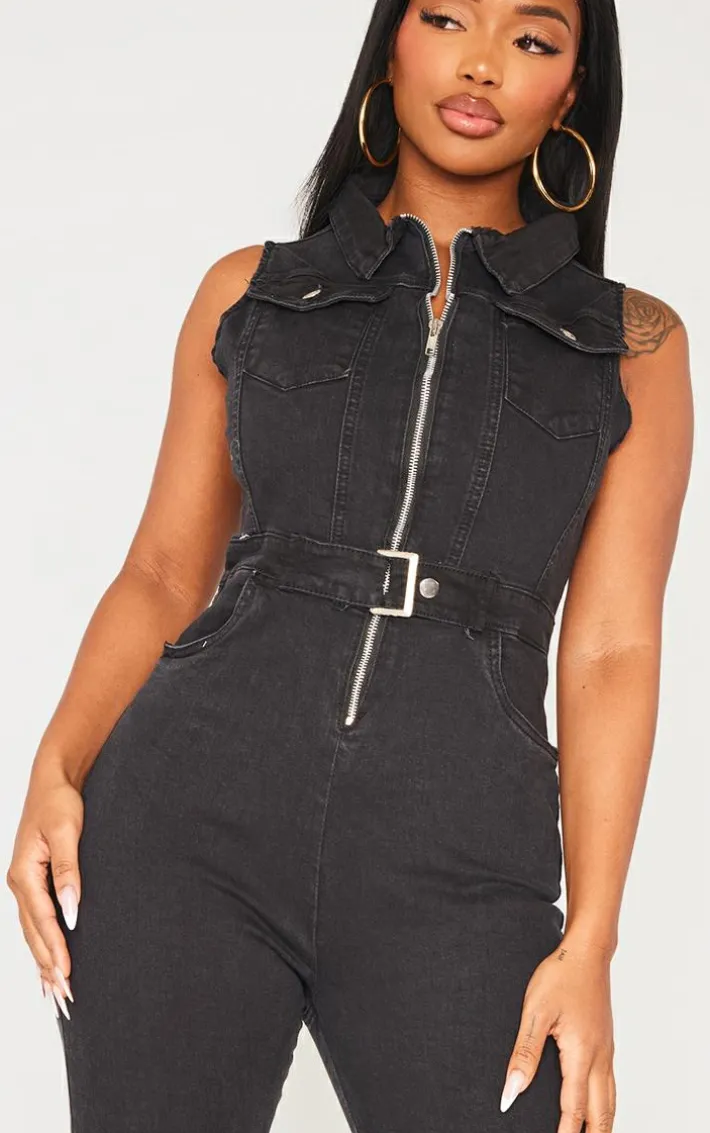 Add some edge into your weekend wardrobe with this shape black belted detail stretch denim jumpsuit. Brought to you in black stretch denim material with a belted detail, what’s not to love? Team this unreal shape jumpsuit with a pair of heels and accessories of your choice for a fool proof finish everyone is obsessing over.