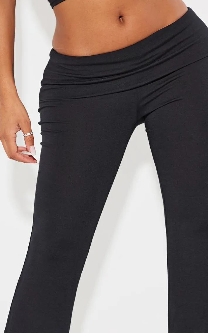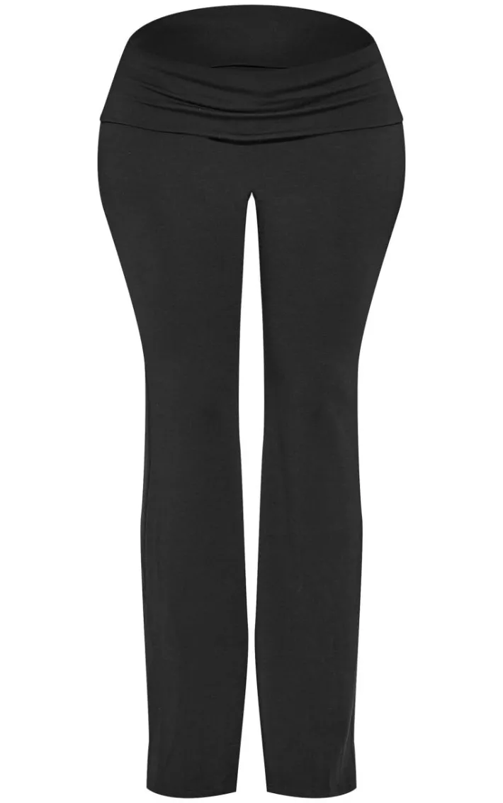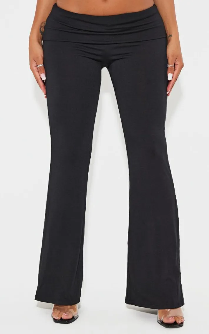 Make them stare this season in these shape black contour jersey foldover waist flare pants. These pants are brought to you in a black hue for a versatile piece in your everyday wardrobe. In a jersey material, what more could you want doll? Style with a statement top and some comfy kicks to finish off the look everyone is loving.