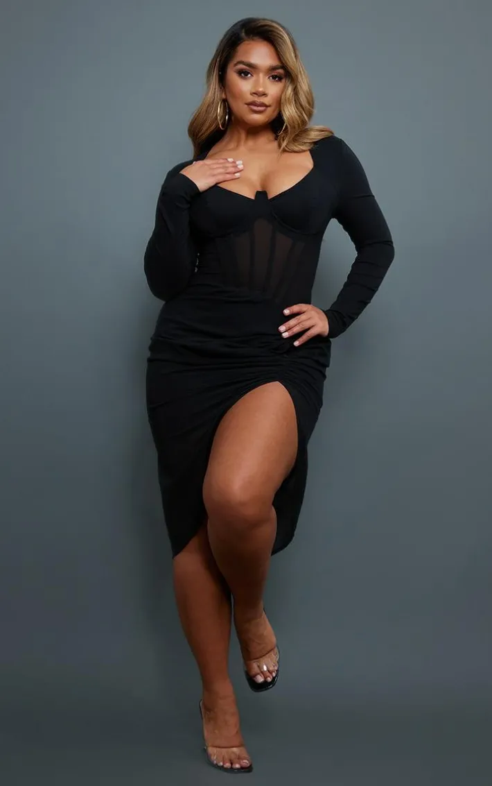 Get that effortlessly chilled vibe on-point with this dress. Featuring a black hue material with corset detail and a midi length. Just add some clear heels to finish off this fiercely feminine look.