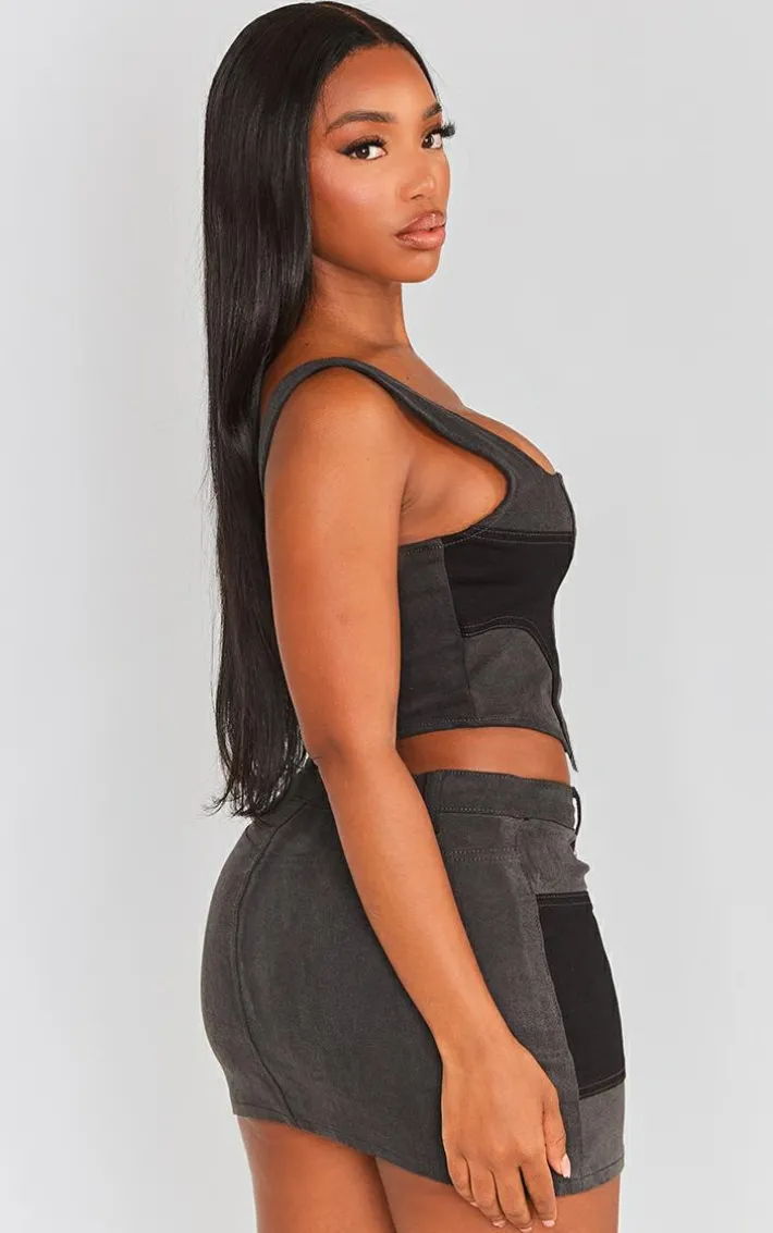 Turn up the heat in your weekend wardrobe with this shape black denim corset. This corset is brought to you in a black denim material with a corset design and a figure-hugging fit, how could you turn this down? Complete the look by wearing this with the matching skirt, high heels and accessories for a look that will have all eyes on you.