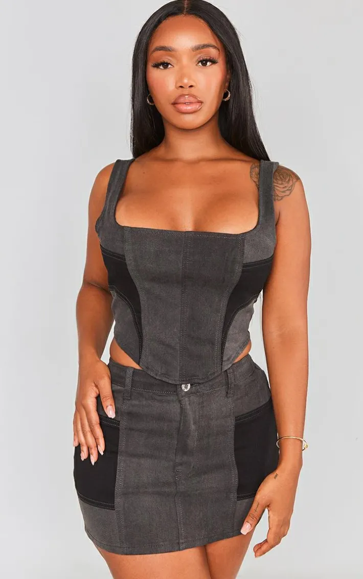 Take on your weekend in style with this shape black denim micro mini skirt. This mini skirt is brought to you in a black denim material with a micro mini length, what’s not to love? This mini skirt is everything and more we’re loving paired with the matching top, knee-high boots and a black mini bag for a combo that we can’t stop crushing on.