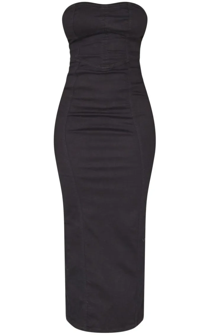 When the dress code calls for all the chic vibes, this shape black denim seam detail split back midaxi dress is always the answer. Made from a black denim material that hugs your figure in all the right places with seam detail for that extra edge and a split back design for that luxe touch, what more could you ask for? Simply add clear heels, gold accessories and a mini bag for the ultimate weekend-worthy finish.