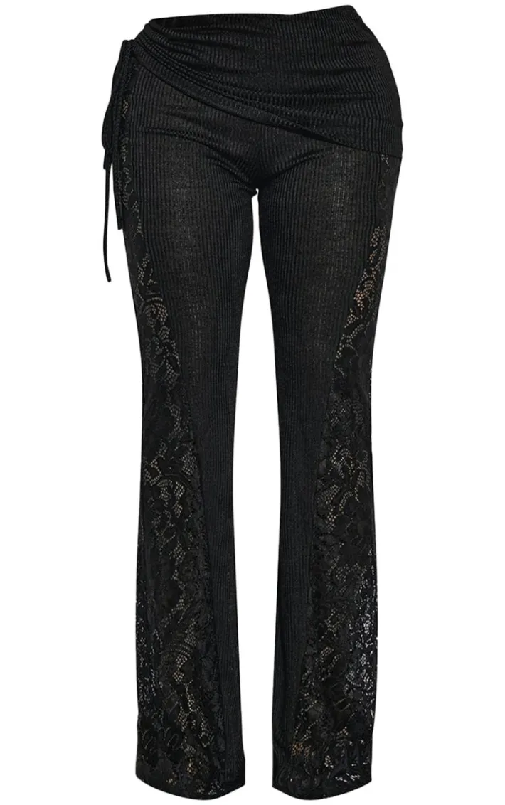 Look the best dressed for any occasion with these shape black fold over ribbed pants with side panel detail. Brought to you in a black ribbed material with a fold over design and a side panel detail, what more could you want? These pants pairs perfectly with a pair of heels and a crop top for a finished look you will feel confident in.