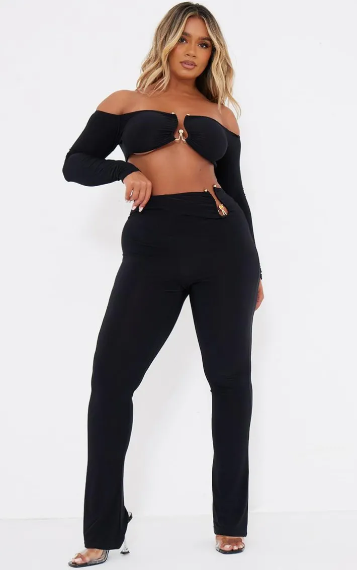 Step out in style with these shape black high waisted ring detail flare leggings. Brought to you in a black material with a high waisted design and a ring detail, you will be feeling luxe in these leggings. These flare leggings give you a flattering fit like no other. Team with the matching crop top and some clear heels to finish off the look.