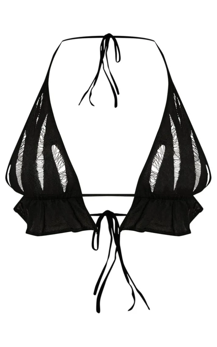Have all eyes on you with this shape black knit ladder detailed halterneck bralet. This bralet is brought to you in a black knit material with ladder detail and a halterneck style, how could you turn this down? This bralet is everything and more we’re loving paired with the matching skirt, high heels and accessories for a date night look.