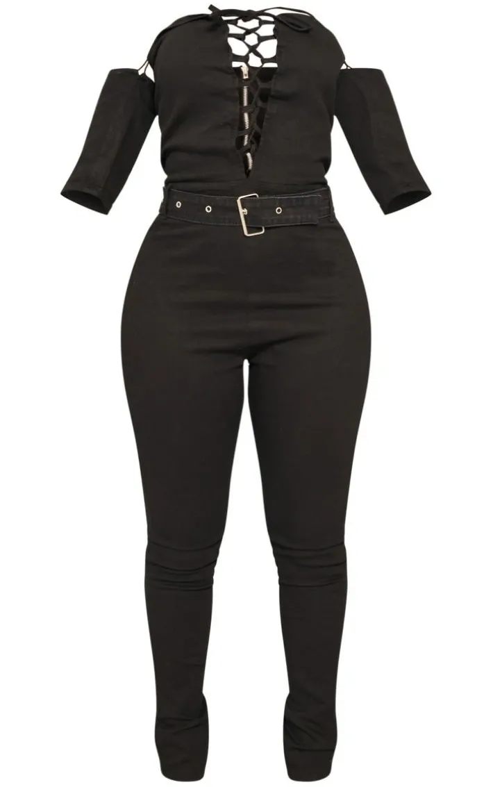 Get ready for the weekend with this shape black lace up bardot stretch denim jumpsuit. Brought to you in a black stretch denim material with a lace-up detail and a bardot neckline, what’s not to love? Whether you have a date night with someone special or found some last-minute plans , this shape jumpsuit is sure to nail the dress code. Team with clear heels and gold accessories for a flawless finish.