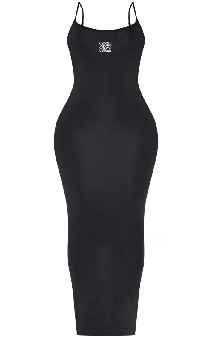 Feel confident in this shape black logo seamless maxi dress. Brought to you in a black seamless material with a logo detailing and a maxi length, you are sure to be showing off your shape in all the right places. Team this shape dress with a pair of clear heels and accessories of your choice to elevate your look even further.