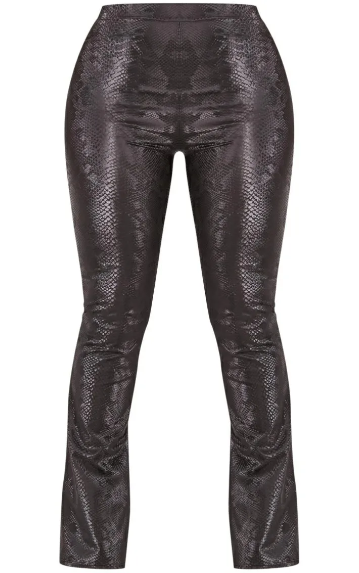 Bring out your daring side with these shape black matte faux leather snake flare pants. These pants are brought to you in a black matte faux leather snake material with a flared fit and a high waist, what’s not to love? These pants are everything and more we’re loving paired with the matching top, high heels and accessories for a next-level look.