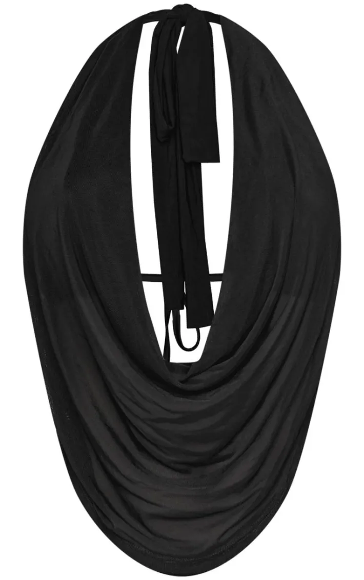 Introducing your new evening staple with this shape black mesh halter cowl neck top. Made from a black hue mesh material with a halter cowl neckline, this top is a must have for any occasion. Team with the matching mini skirt, black lace up heels and gold accessories for a chic finish everyone will be asking about.