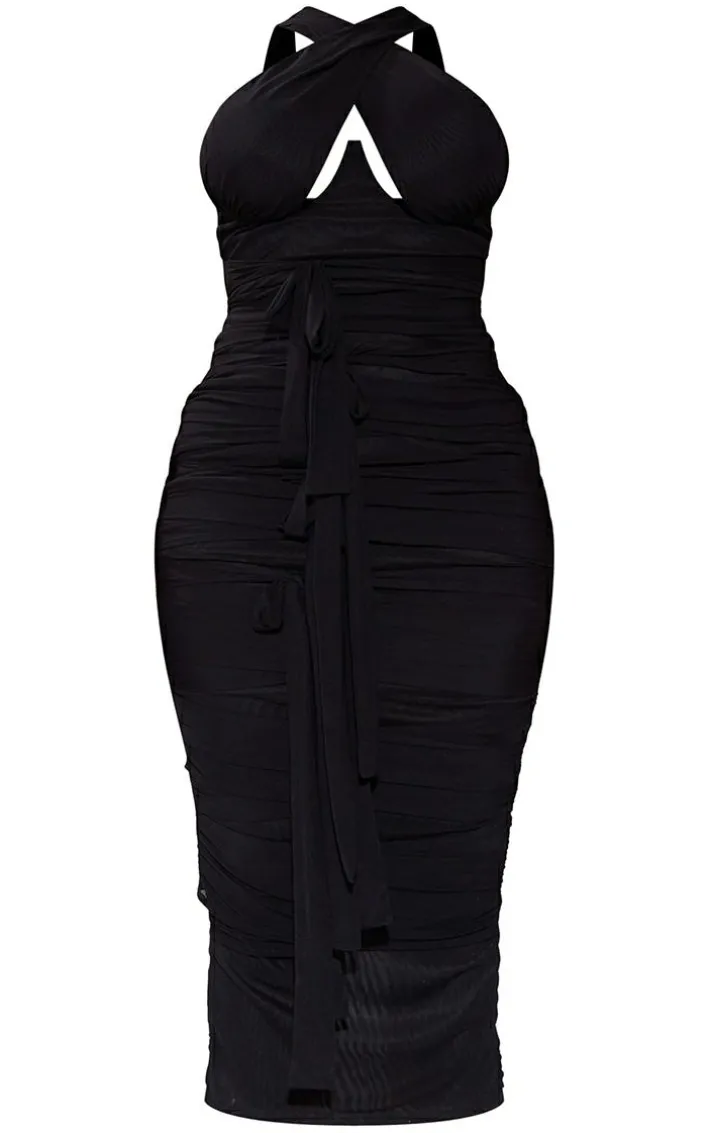 Get ready for the weekend with this midaxi dress. Featuring a black mesh material with a tie detail and a figure-skimming fit. Style this with barely-there heels and simple accessories to complete the look.