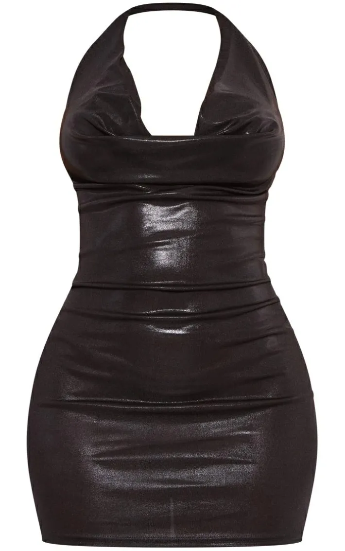 Whenthe weekend calls for a little drama this shape black metallic cowl neck bodycon dress will have you at the center ofattention. It is made using a black metallic material with a cowl neck and a figure-hugging fit, what more could you want ? Style this with clear slip-on heels andstatement accessories to elevate the look further.