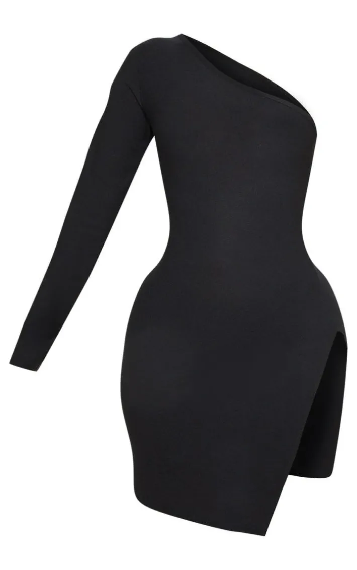 Bring some sultry vibes to your little black dress collection with this bodycon. Featuring a one shoulder design and a leg split, we love this teamed with orange mules and simple accessories for an understated style.