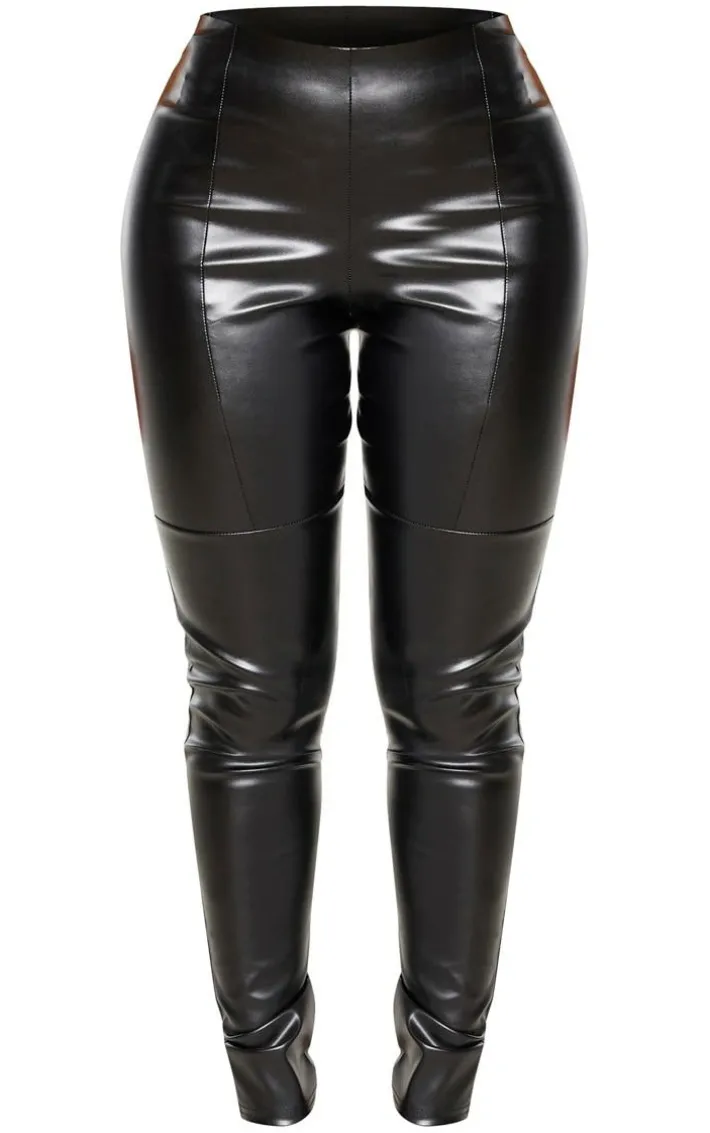 Spice up your weekend look with these pants doll. Featuring a black PU material with a panelled design, wear them with a black crop top and complete the look with high heels and a bright bag.
