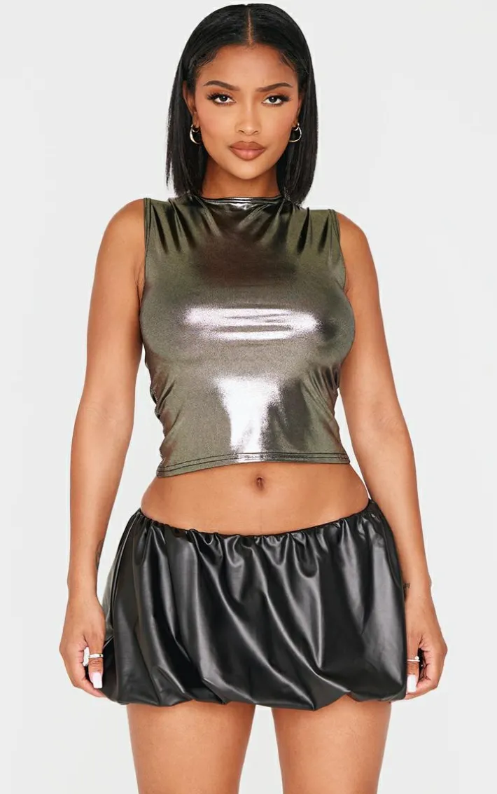Make a statement with this shape black PVC puff ball skirt. Brought to you in a black PVC material with a puff ball design and a mini skirt length, you are sure to be setting trends in this skirt. Pair with a metalliccropped tee, bold jewelry and your go-to court heels to turn heads this season.